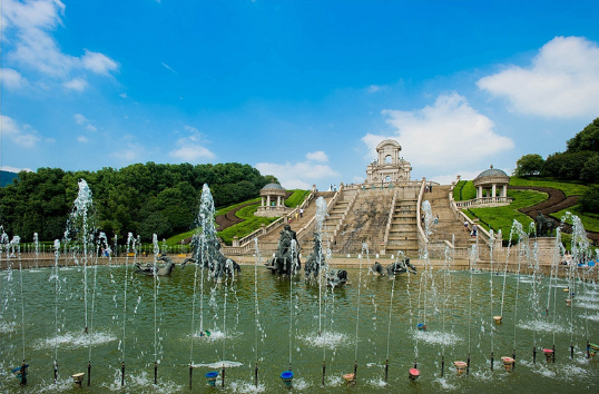 每到春秋季節(jié),像小斯這樣到天都公園來拍婚紗照的準新人絡繹不絕。這個占地1000畝充滿法蘭西風情的公園,幾乎是天都城業(yè)主的私家花園:有侏羅紀兒童樂園、法國小鎮(zhèn)、天鵝湖、山頂城堡、阿波羅戰(zhàn)車噴泉、疊泉廣場、宮廷花園、可容納約2000個觀眾席位的露天劇場、竹林迷宮和化石林區(qū)等,特別是65000平方米的天鵝湖已經(jīng)成為不少婚紗拍攝的經(jīng)典場景。