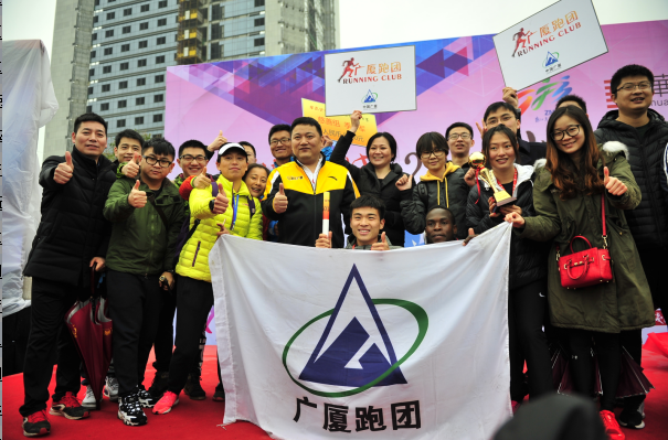 廣廈跑團(tuán)成立兩年多來經(jīng)常參加上海、杭州、東陽等各地的馬拉松比賽,影響力正越來越大。在比賽中除了給自己隊(duì)員加油外,啦啦隊(duì)隊(duì)員們還為其他參賽選手吶喊加油,完美演繹了廣廈人的包容和大愛。本次比賽組委會(huì)將體育與慈善進(jìn)行了有機(jī)結(jié)合,參賽隊(duì)可以通過手機(jī)捐贈(zèng)平臺(tái)開展公募,最終廣廈雄獅隊(duì)發(fā)動(dòng)211人籌得善款7145.67元,成為發(fā)動(dòng)募捐人數(shù)最多和捐款額最高的隊(duì)伍。