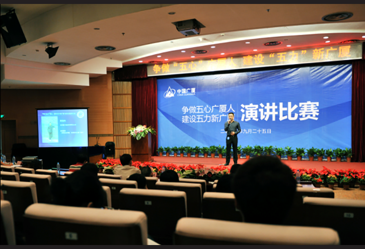 2013年9月25日,廣廈集團“爭做‘五心’廣廈人,建設‘五力’新廣廈”主題演講比賽在杭州圖書館報告廳開講。來自杭州、湖北、陜西、上海、江蘇等地的廣廈企業(yè)的16名選手參加了比賽。