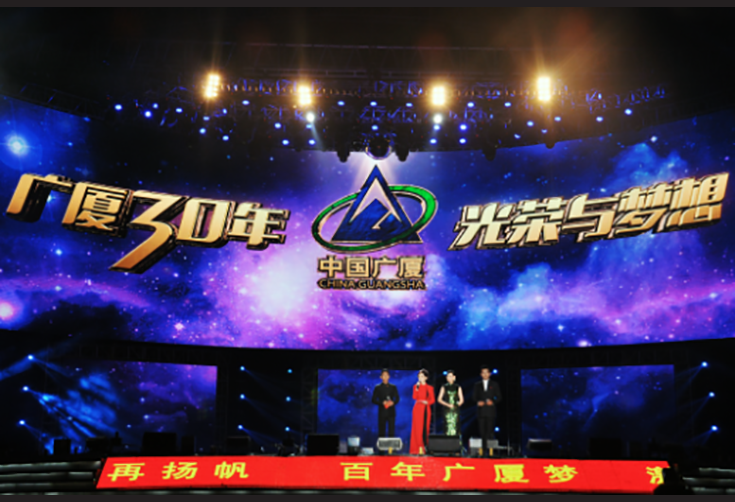 2014年11月8日,廣廈控股集團(tuán)舉行了“光榮與夢想——廣廈創(chuàng)業(yè)三十周年大型文藝晚會(huì)”,晚會(huì)由撒貝寧、許戈輝、席文、亞麗擔(dān)任嘉賓主持,那英、韓磊、劉愷威、吉克雋逸、筷子兄弟、玖月奇跡以及第三屆好聲音總冠軍張碧晨、季軍余楓等眾多明星激情獻(xiàn)唱。“國民大叔”吳秀波也專程趕來為廣廈慶生站臺(tái)。